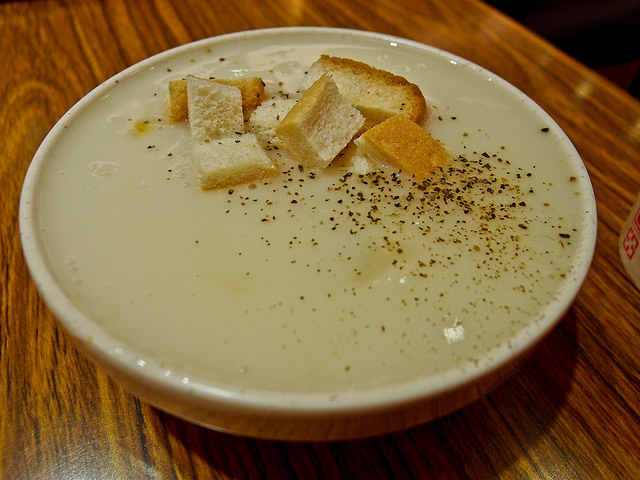 這種店, 湯的特色就是要燙, 可以的話有麵包角和胡椒更好