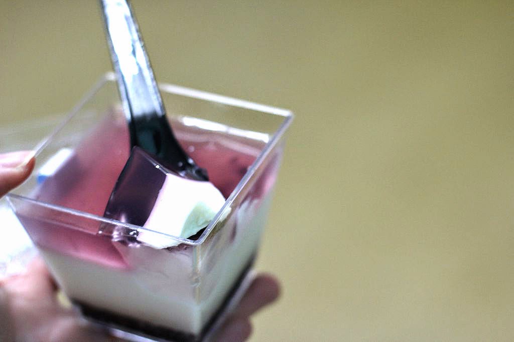 最後是可可杯,這甜點比較可惜的是,往往人們對於可可已有了刻板印象,但看說明時沒注意到上面是葡萄,有點微酸的葡萄果凍,入口搭配後,那個口感上的印象就很跳脫,比較適合愛嚐鮮的人。