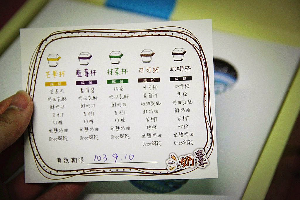 裡面的口味包含藍莓、抹茶、可可、咖啡、芒果等,都有清楚的成分內容說明,讓消費者知道自己吃到嘴中的是什麼。