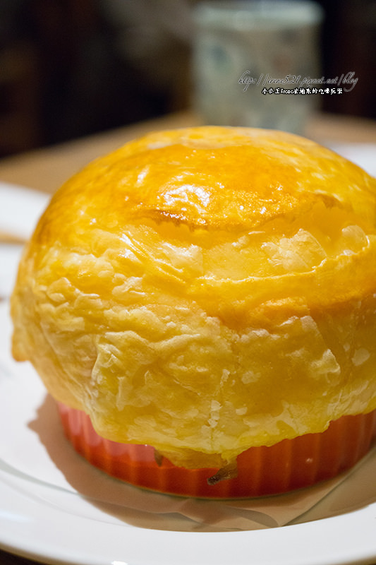 把酥皮稍微下壓後,這模樣看起來有點像半熟蛋糕呢。