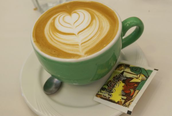 拿鐵 無糖 有拉花~ 至於會拉出什麼花?不確定~ 當天剛好 吧檯有空! 我們拜託他 拉出不一樣的