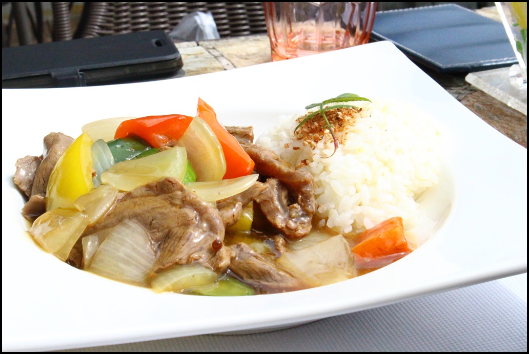 因為肚子很餓了,所以還是硬著頭皮接受陽光的薰陶,坐在戶外區吃飯
