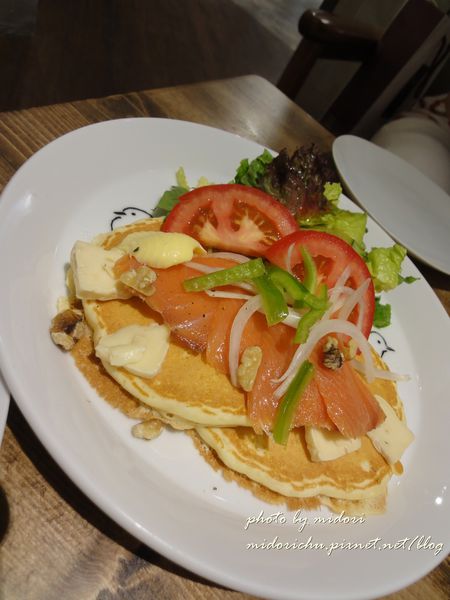 因為朋友極愛吃燻鮭魚加上想點一份鹹的鬆餅來試試