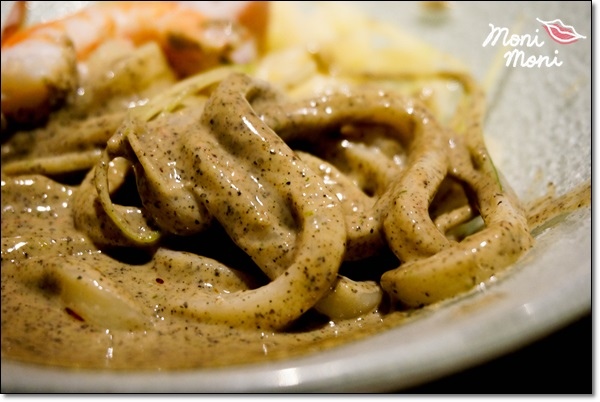 千萬別小看這碗涼麵,這裡使用讚岐烏龍麵,冰鎮過後的口感Q彈到不行,烏龍麵和海鮮的搭配還蠻特別的,淋上特調過的黑芝麻胡麻醬,滴入一點辣油,味道更帶勁。
