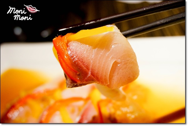 獅魚在生魚片中價位屬於較高也比較不常吃到的品種,這樣獨特的搭配方式使生魚片本身的滑嫩度,與冬瓜巧妙的融合再一起,相當不錯的開胃生魚片。