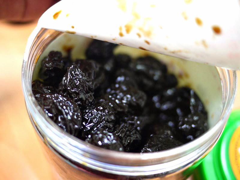 用蜜醃製過的黑棗,味道聞起來有種微酸甜鹹的滋味,某些時候又感覺有點像是夾帶著梅粉的感覺,實際吃起來則只有香甜的味道,很開胃,會讓人想一顆接著一顆吃下去,有同事才吃一顆就想發起團購了。