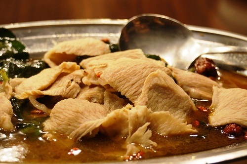 松阪豬配上麻油、川七、紅棗、老薑料理,