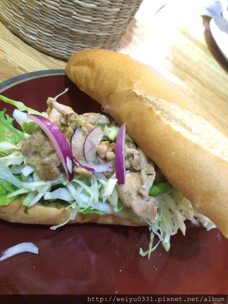 吧給就是硬要英翻中的結果,好吃的軟法,搭配冰涼口感的綠咖哩雞肉,椰汁的味道也非常出色,不過Ethan小提醒就是建議要快快吃,不然當汁都滲透到麵包下層厚,會覺得口感失真有點小可惜。