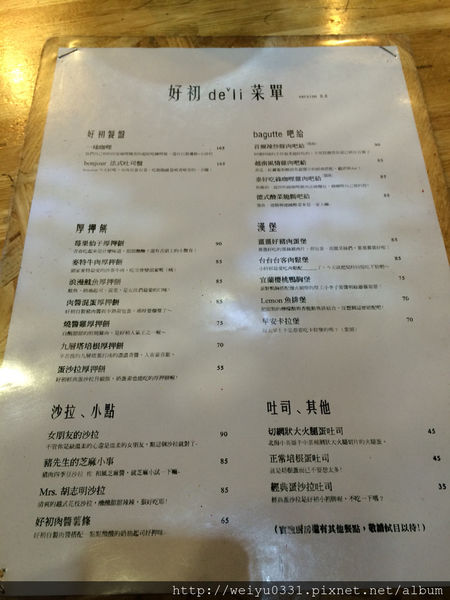 我們先來看看菜單的部分,維持一貫的手寫字體讓人覺得溫馨,厚押餅其實應該就是很認真處理的吐司吧,吧給就是軟法麵包。