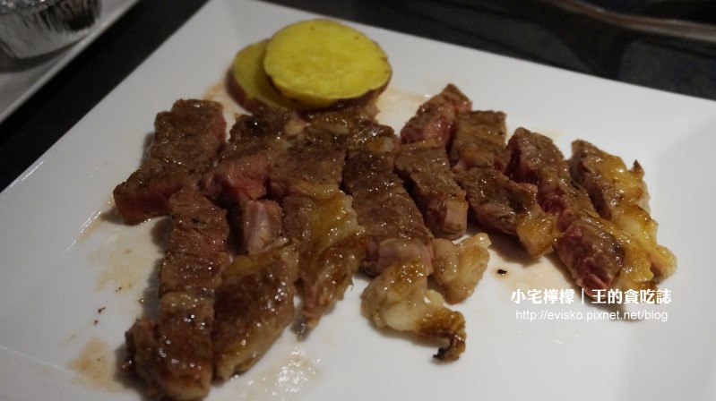 上等肋眼牛排,服務人員會幫忙烤,讓人覺得很安心,服務超好。這牛排的厚度也很感人,烤起來香噴噴,讓人想一大口吃下去。