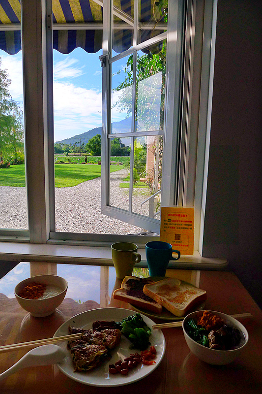隔天早餐,坐在一樓的餐廳裡用餐,選個靠窗的位置坐下來就對啦!