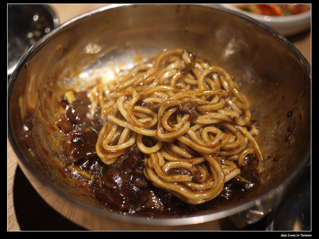 這兒的韓式炸醬麵麵條口感還不錯, 味道上不會很鹹(雖然看起來很鹹), 但比較單調, 就是單純韓式炸醬, 一般店家的都會放些海鮮增添層次感,