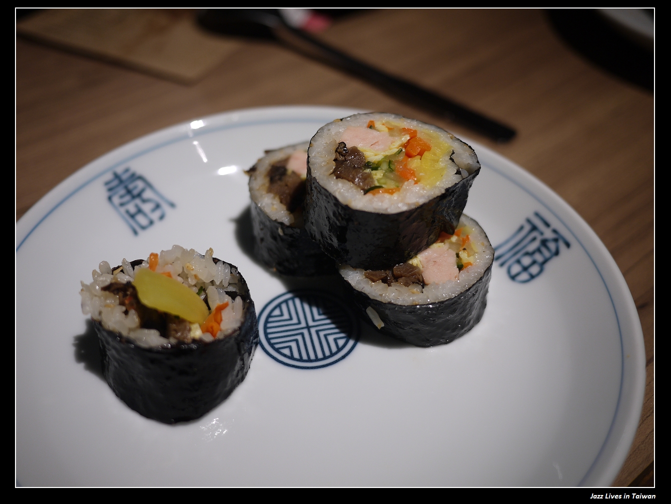 韓式紫菜卷, 跟日式的壽司捲不同, 韓國紫菜有點麻油味, 飯也不是使用醋飯, 口味還是客倌自己試試看囉!