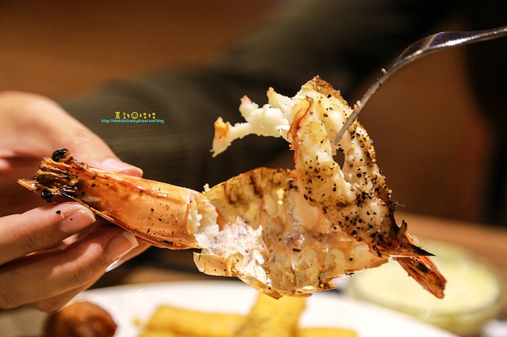 我真的萬萬沒想到拼盤裡面竟然會有烤蝦,而且很肥大飽滿,吃起來也完全不費力,用叉子輕輕一摳就皮肉分離;