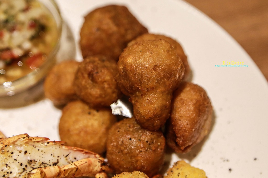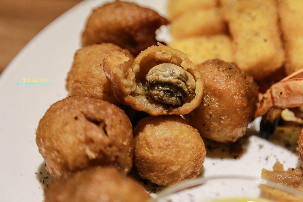 而最讓我們喜愛的莫過於它的蘑菇球,它並非完全飽和的炸物,而是外面脆皮咬下去後有空心感,接下來才會咬到中間的磨菇,