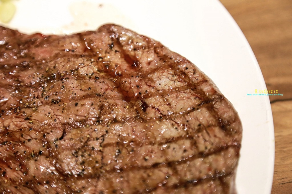 咬起來也沒有像原味炭火肩胛牛排那麼容易咀嚼,因為中間的筋較為明顯,肉質同樣鮮美,
