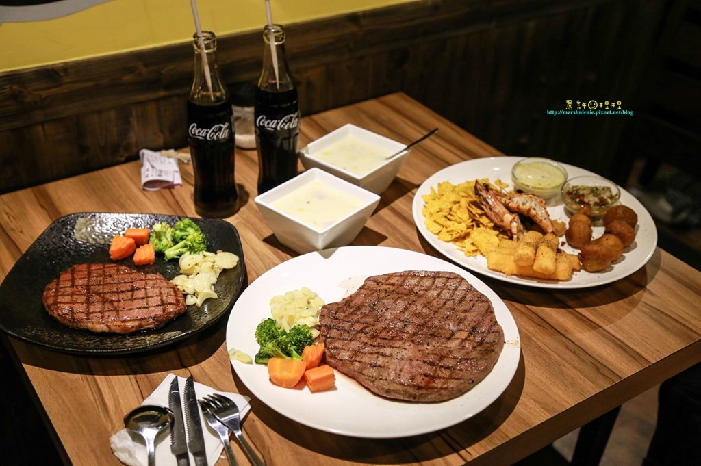 除了牛排便宜大塊又好吃外,它們的美式拼排也是必點菜色大力推薦,我個人覺得挺超值得,