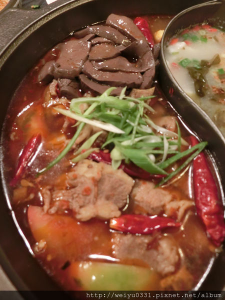 麻辣鍋底有各式各樣的中藥材,每次一不小心咬到就會覺得很煩,不過還好鴨血真的好嫩,不愧是無敵麻辣鍋,肉片一放下去整個內心都要融化了。