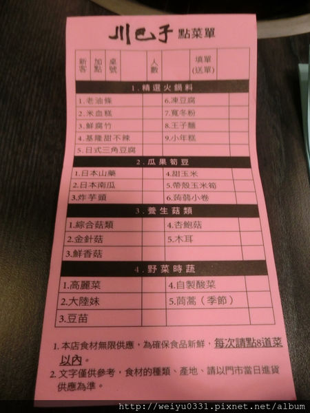 來看一下加點單,小菜和火鍋料都可以隨意加點。