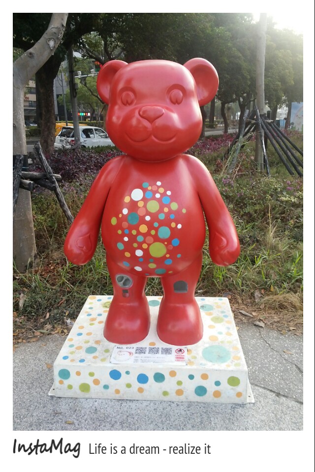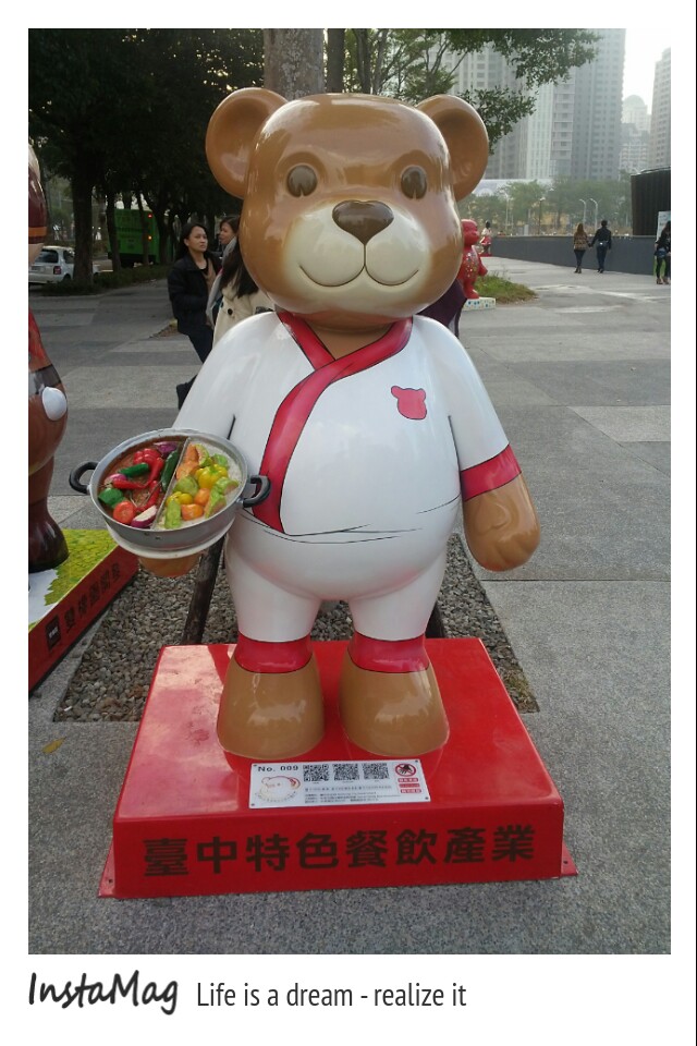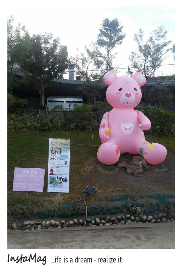 在台中這麼精華的地帶,居然還有可以讓人這麼舒坦散步的地方,台灣泰迪熊協會主辦的2013泰迪熊台中樂活嘉年華活動,也有在秋紅谷展出喔,所以這些可愛的28隻不同造型的泰迪熊。也會出沒在這景觀生態公園翠綠的步道,其中引人注意的就是,手裡拿著太陽餅,坐在草坪上的大型粉紅色泰迪熊最出名,相當具有在地特色,展期從11月28日展到明年103年1月4日止,有興趣的,趁這檔活動看看美美的風景,也來數數超卡哇伊的熊熊吧~地址:台中市西屯區中港路二段(台灣大道)跟朝富路交叉口或是市政北七路跟河南路三段路口費用:免費自由參觀開放時間:全天候