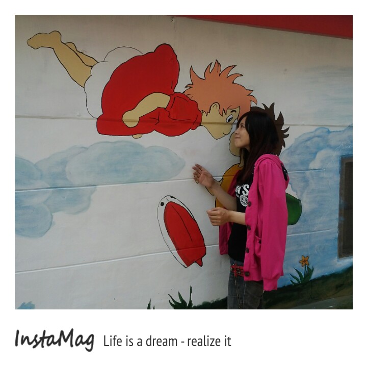 我與大隻的龍貓有個約會,橘色的圍牆用色鮮明,也是這裡的主角之一喔