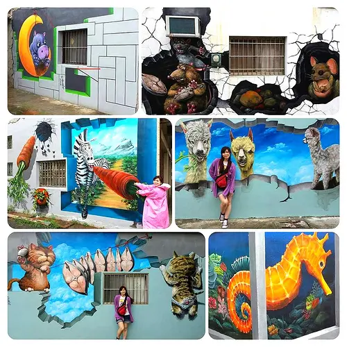 從房子旁邊的巷子進去可以看到其它的彩繪