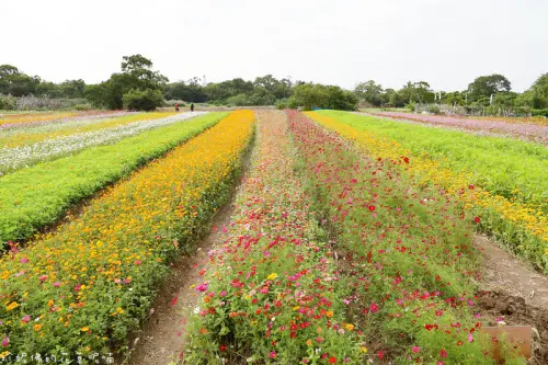 除了剛剛的向日葵和波斯菊,這裡還種植了相當大一片的百日草花海