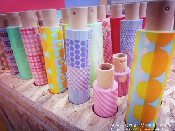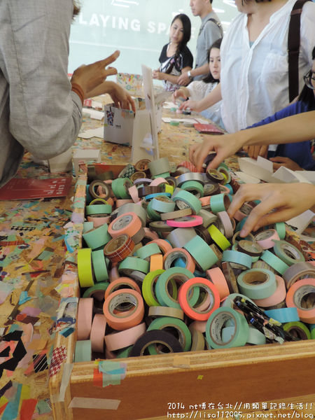 好不容易擠進去了,桌上是兩盒滿滿的紙膠帶讓人可以隨心所欲的體驗