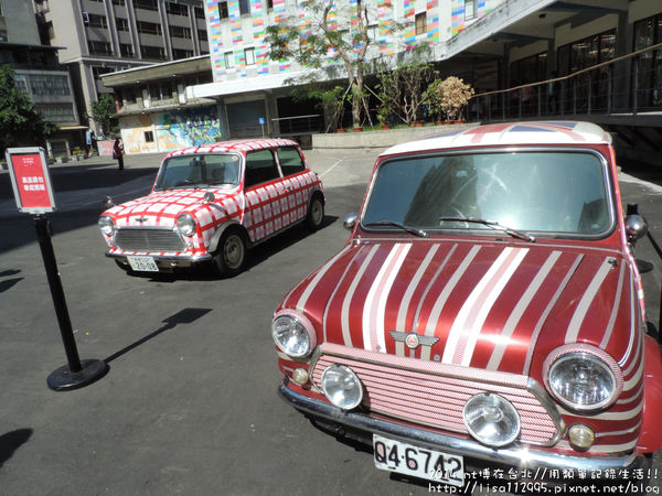 展場外的兩台車車,上面也都貼滿紙膠帶啊~~~