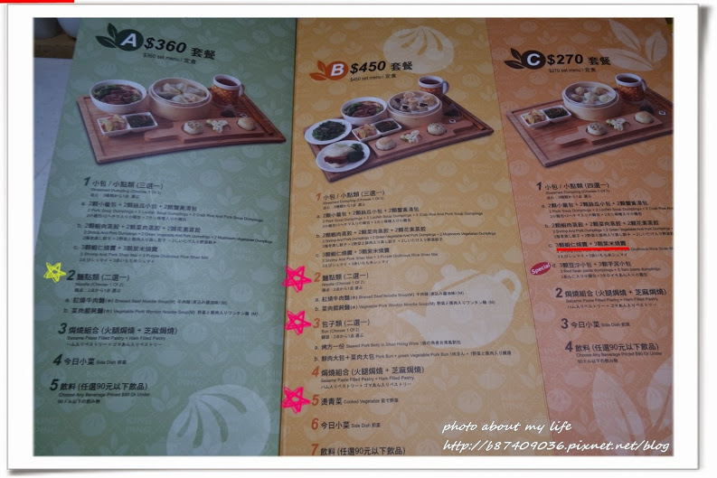 套餐分成A360元、B450元、C270元(莫名覺得跟天仁X茶的X茶趣好像XD)
