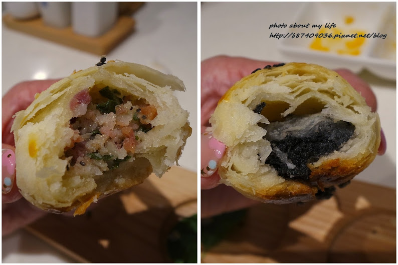 黑白芝麻混摻的是火腿餡 吃得到火腿的鹹香和蔥味 但私心不愛這類的鹹味小點 跳過///▽///
