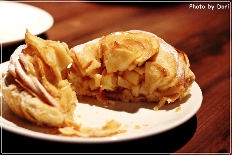 再來就是萬眾期待的蘋果派了,一片又一片的蘋果圍繞成一朵美麗的花,醃漬過後的蘋果片僅有淡淡香氣,一點都不甜膩,還聞的到肉桂味,只能說蘋果和肉桂搭在一起還是最對味了,NT180元。
