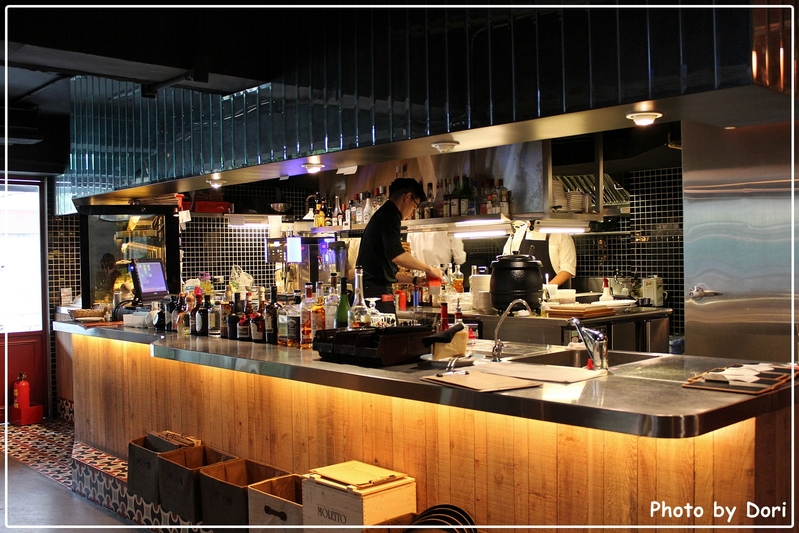 調酒吧台與料理製作的地方都在這裡,雖是開放式廚房,坐在位置上並不會有感覺到油煙味的產生。