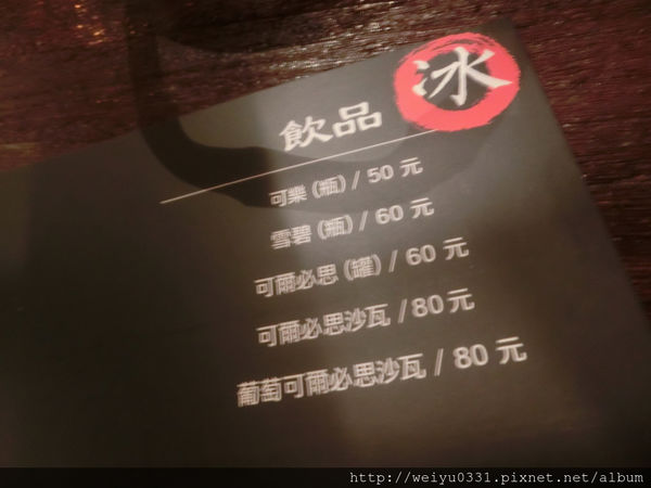 飲料的部分有多種選擇,想喝酒的人也可以嘗試,畢竟這裡是居酒屋嘛!!!小弟今天騎車所以放棄小酌。