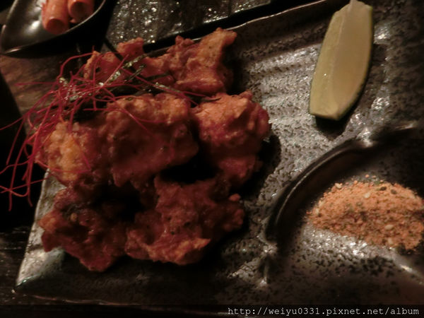 小雞塊配上特製的胡椒鹽,酥脆的外皮配上鮮嫩的雞肉內餡,一咬下去就會噴出汁的那種juicy,我只能說,小心燙口。
