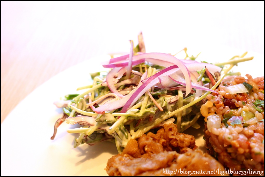 不同於一般都是美生菜,這裡的沙拉給的都是苜蓿芽,