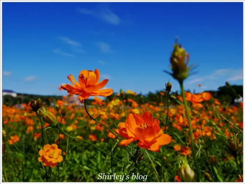 在還沒到會場前的農地也都種了大片的波斯菊花海,