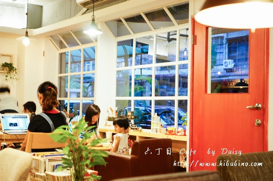 店內的色調以白色以及原木色為主,漆成紅色的門,顏色看起來格外可愛,也成了六丁目裝潢中的一個亮點。一進到六丁目cafe,店員也立即引導我們找了張兩人桌的空位坐下,耳裡傳來的是Olivia的歌聲,輕輕柔柔地好舒服。