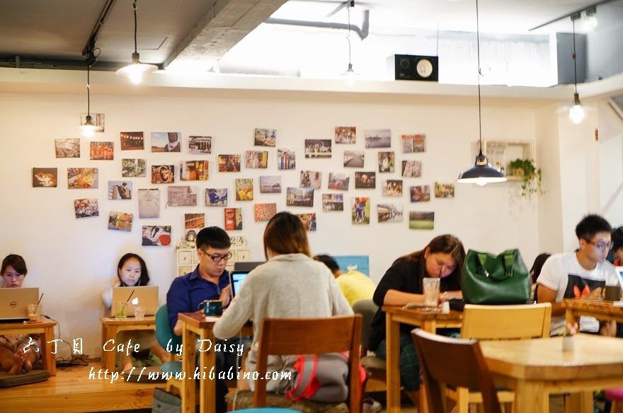 站在六丁目Cafe外頭,就可以透過白色的方窗格子,看見店內客人舒服地坐在位置上喝著咖啡、用著電腦,吧台內,則是店員正在忙碌著的樣子。