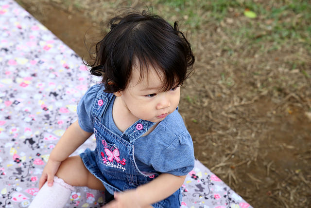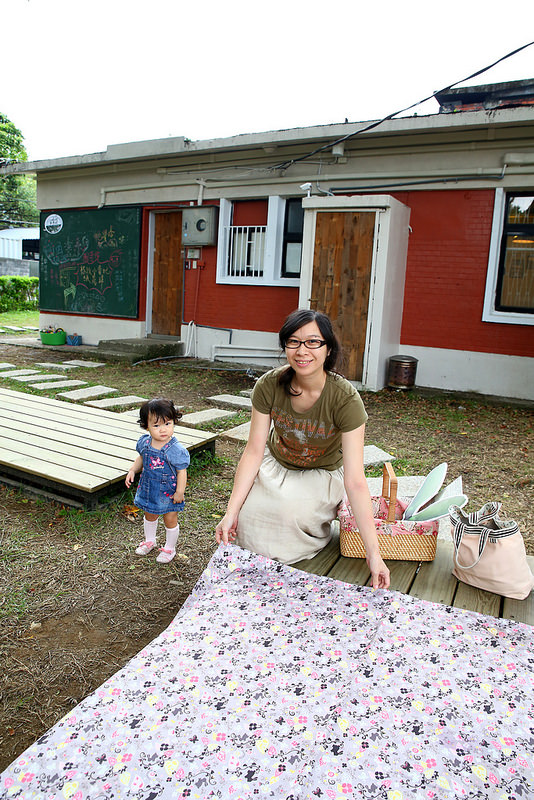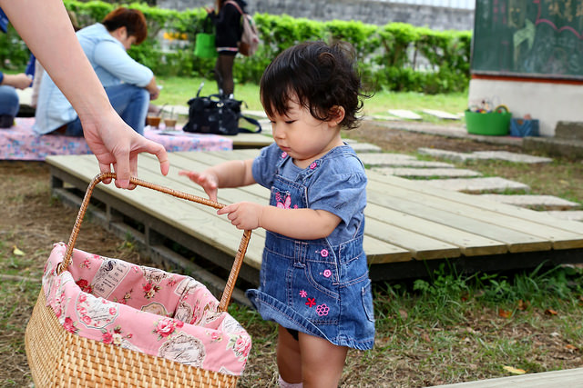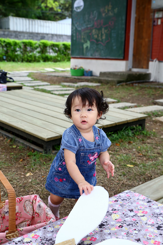 選好位置鋪開來,就可以體驗難得的野餐時光,今天幫小品姍打扮成鄉村牛仔女孩風格。