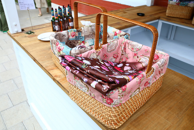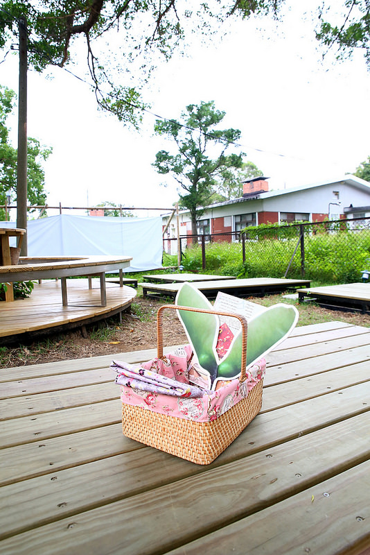 野餐提籃裡面放的是很大張的防水坐墊,等一下可以用來鋪開。