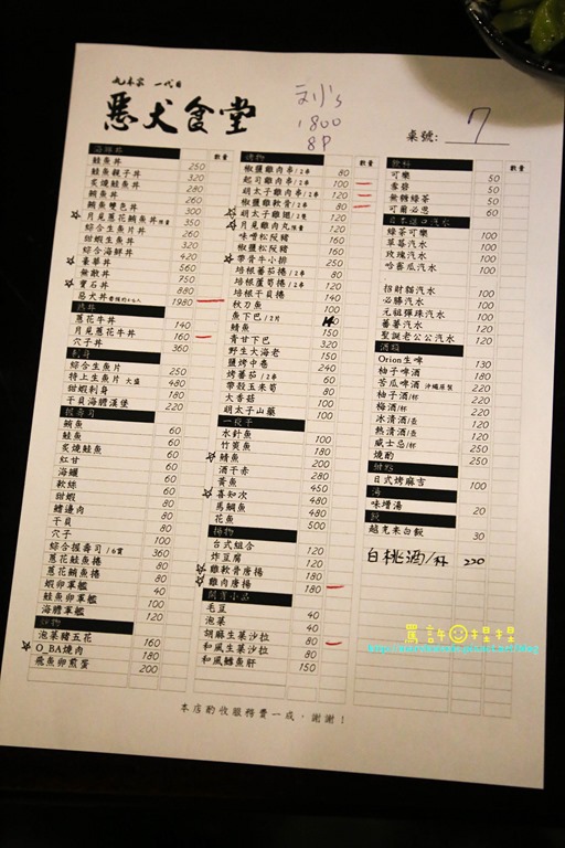 它們的菜單除了日本料理店必備的生魚片和壽司外,還有炒物、烤物、烤魚、揚物、開胃菜、飲料、酒、甜點、湯…等,