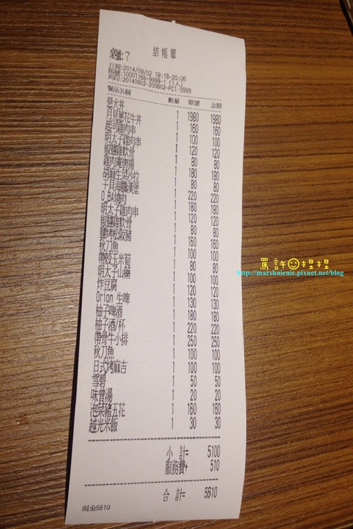 看完以上有沒有覺得很誇張,我們一個人吃了700元,總共5610元。