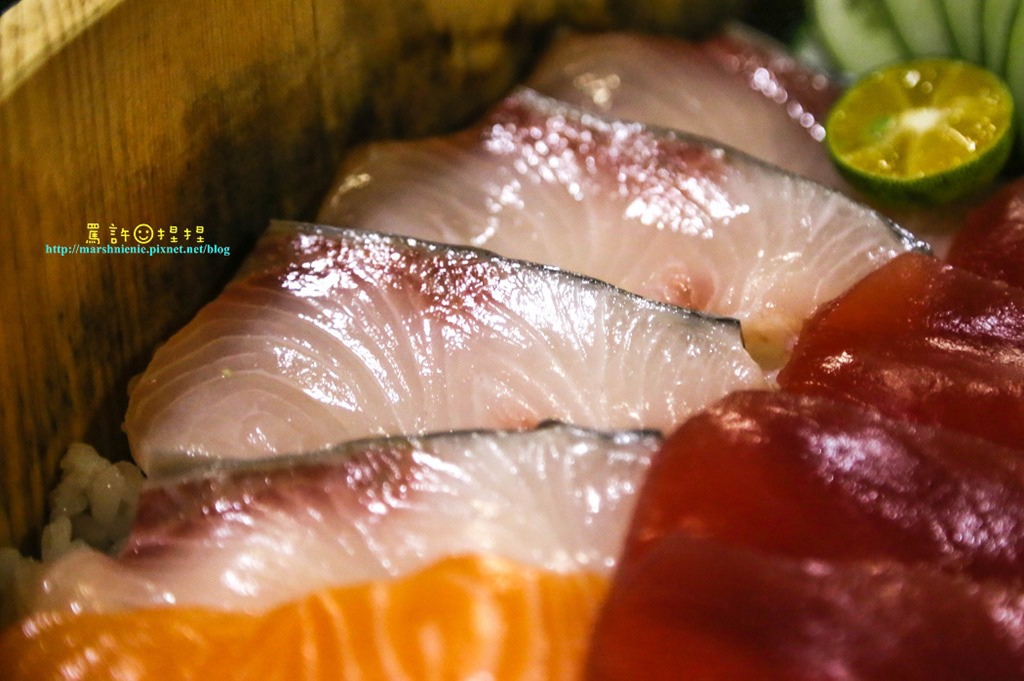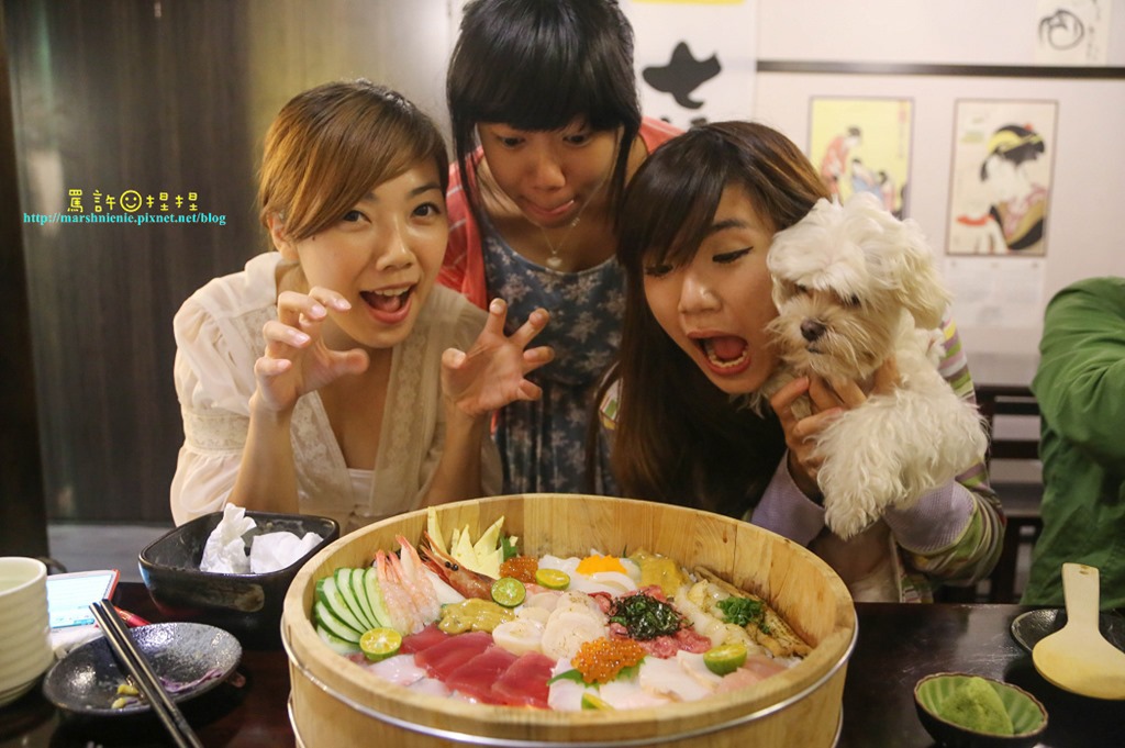但因為我們有八個人,手腳慢的人注定就是吃不到,所以我們當天都是用搶的,而且都只先夾上面的生魚片,最後當然還是有把醋飯吃光光啦~