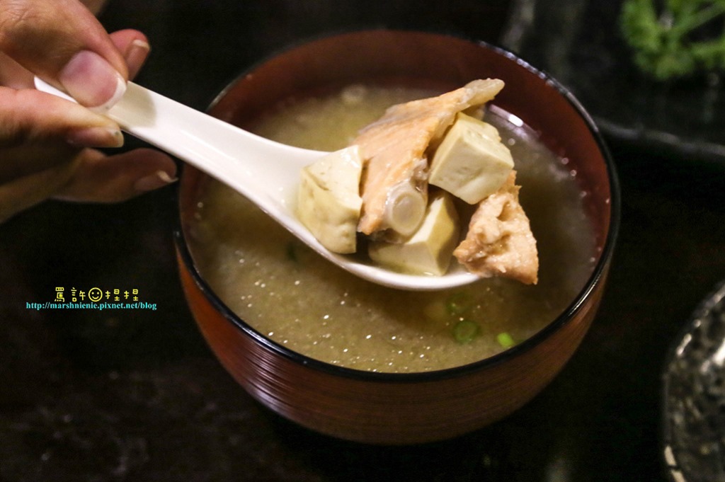 但好險惡犬食堂的味增湯很好喝,料也給的很大方,裡面的豆腐和鮭魚都蠻多的,
