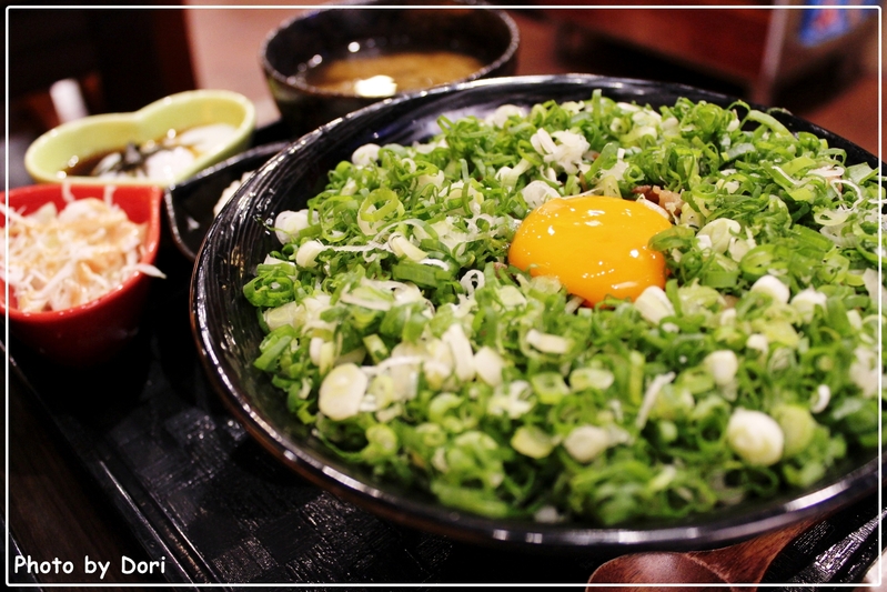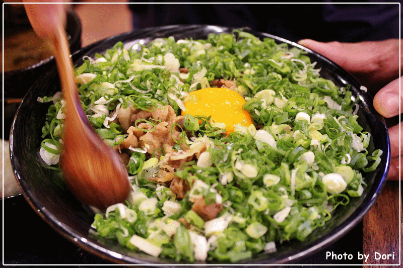 看著一顆鮮黃色的雞蛋在丼飯裡,外圍佈滿了翠綠的蔥花,下頭則鋪放著牛肉片,所謂的丼飯就是指能將食材放進開口大的容器,然而這份誠意滿滿的蔥丼,真的是讓人衝動的想立馬嚐鮮了。