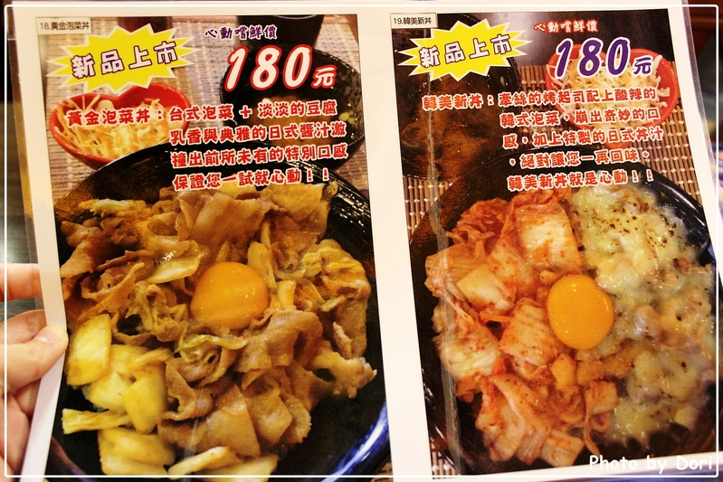 最近也推出了二種新品,分別為黃金泡菜丼及韓美新丼,不同地方就在於選擇的泡菜種類為台式或韓式,然後在配料上加以變化,目前的嘗鮮價格都是NT180元。