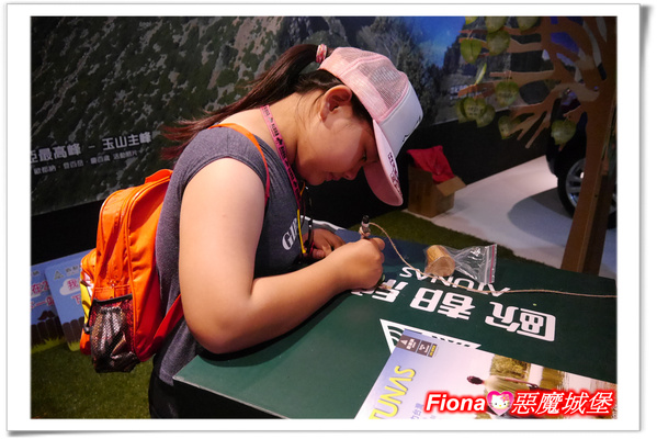 我們進入展館內的時候,剛好遇到有免費的DIY活動,是用小木頭做鑰匙圈,過程也不難,只要先將樹皮去除,再用砂紙磨平滑,最後掛上鑰匙的鐵圈,就OK囉!!