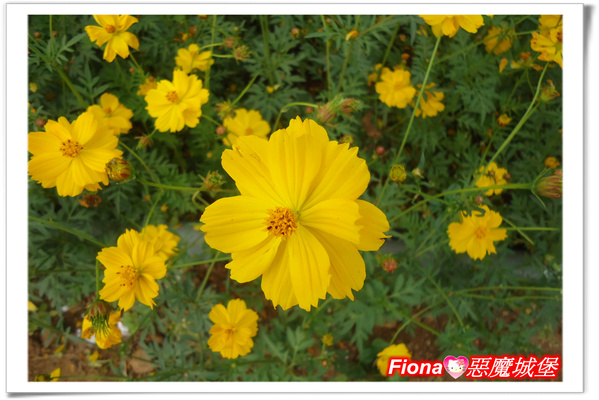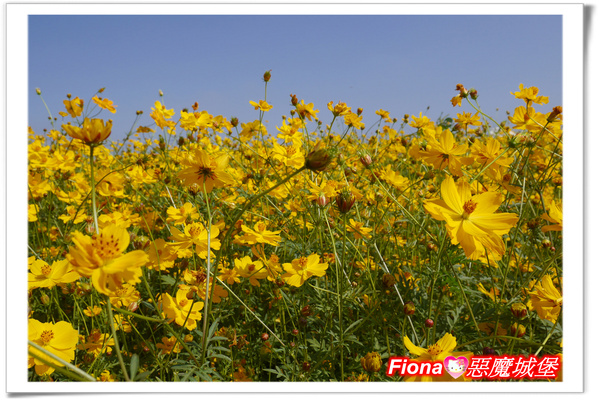 填飽肚子後,又繼續我們的賞花行,整片的黃色波斯菊真的好美唷!!