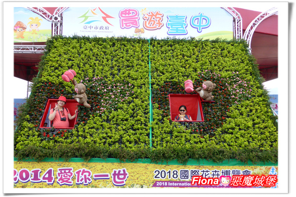 這面「2014新社花海」樹牆是我們每年必拍的,今年憑著照片還可以免費到「心之芳庭」玩樂,所以更是非拍不可呀!!